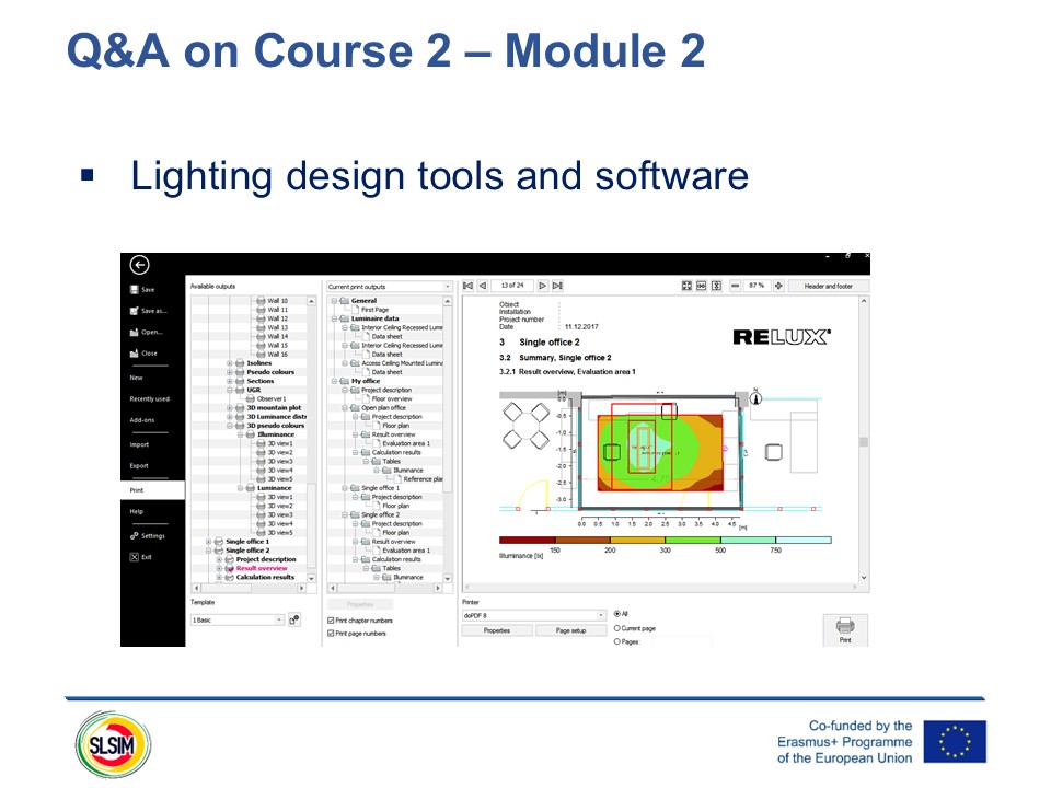 RELUXdesktop software was selected as the digital tool for lighting design and simulation. Teachers received step-by-step guidance on using RELUXdesktop for tasks such as planning lighting layouts, performing energy calculations, and creating visualizations to evaluate the impact of different lighting scenarios. The training also covered advanced features of the software, such as simulating daylight conditions and analyzing the interplay between natural and artificial lighting in different settings.